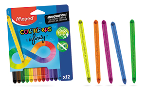 Azoknak pedig, akik szeretnék élvezni a végtelen színezés örömét - anélkül, hogy a ceruzáik hegyezésével kellene megszakítaniuk az alkotást - ajánljuk a MAPED „Color`Peps Infinity” terméket, mely 100%-ban színesceruzahegyből áll, kialakításának köszönhetően önmagát hegyezi, ezáltal teljesen hulladékmentes.