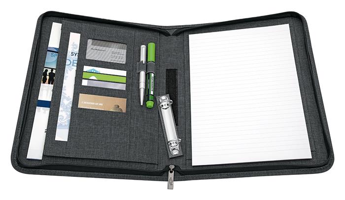 sok zseb és rugalmas, gumírozott hurkok biztosítanak helyet kártyák, tollak és kiegészítők számára