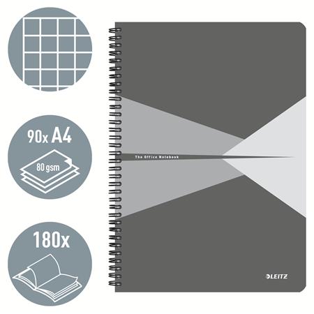 Spirálfüzet, A4, kockás, 90 lap, laminált karton borító, LEITZ "Office", szürke