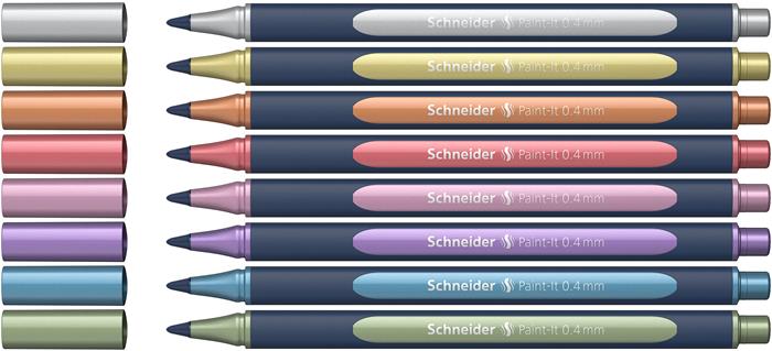KezdőlapIrodaszerekÍrószerekRollertollakMetálfényű rollertoll készlet, 0,4 mm, SCHNEIDER "Paint-It 050" 8 különböző szín