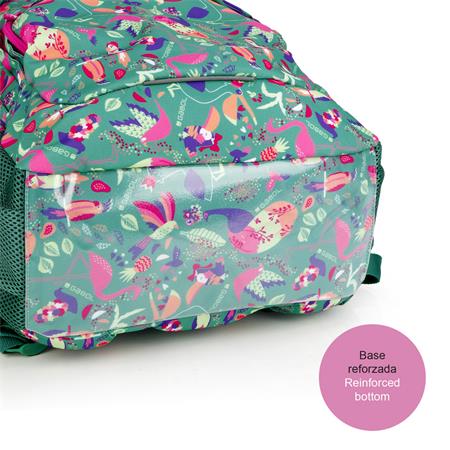 Hátizsák, iskolatáska, cipzáras, GABOL "Vida", zöld, trópusi mintás