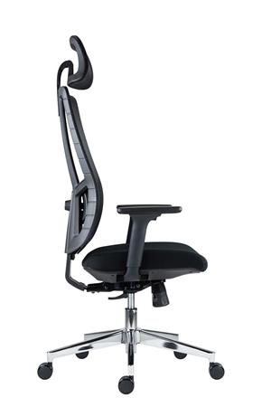 Irodai forgószék, fekete hálós háttámla, szövet ülőlap, állítható dőlésszögű fejtámla, krómozott lábkereszt,"Ruben"