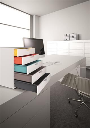 Elegáns irattároló 5 színes fiókkal, melyek segítik a rendszerezést és a tájékozódást.