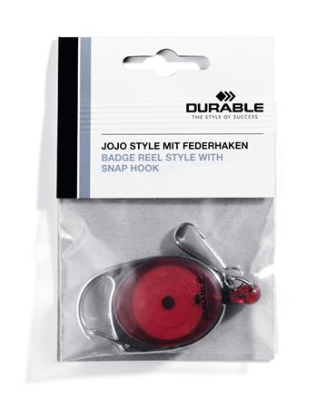 Azonosítókártya-tartó, kihúzható, karabineres, DURABLE "Style", piros