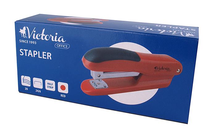 Tűzőgép, 24/6, 20 lap, VICTORIA OFFICE, "Half-Strip", piros