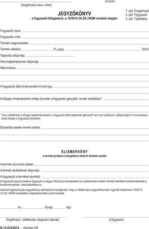 Nyomtatvány, jegyzőkönyv a fogyasztó minőségi kifogásáról, 25x3, A5, VICTORIA PAPER, "B.13-233", 20 tömb/csomag