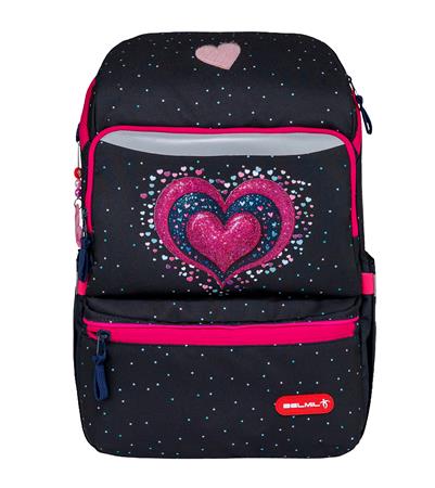 Iskolatáska, cipzáras, BELMIL "Zippy Pinky", pink szív