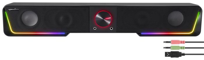 Hangszóró, 12W, 2x3.5 mm jack + USB-A, SPEEDLINK "GRAVITY RGB Stereo Soundbar", fekete