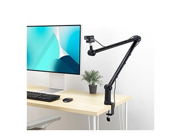 -a széles és strapabíró bilincs könnyedén rögzíthető akár 88,9 mm vastag asztalokhoz, hogy stabil élményt biztosítson minden csatlakoztatott tartozékhoz – a felső rögzítésű kar pedig akadálytalan mozgást biztosít