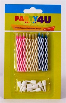 Gyertya, születésnapi, 10+10 db tartó