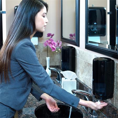 Az Elevation termékcsaládba tartozó, Intuition szenzorral felszerelt Tork kézhigiéniai adagoló kellemes benyomást tesz a vendégekre, ugyanakkor többféle, zárt flakonban forgalmazott Tork kézhigiéniai termékkel használható. Az érintés nélküli adagolásnak köszönhetően a felhasználók számára megfelelő kézhigiéniát biztosít. Az Elevation adagolók praktikus, modern kialakítása mély benyomást tesz a vendégekre. A szenzoros, érintésmentes adagolással csökken a keresztfertőzés kockázata Elősegíti a megfelelő szintű higiénia biztosítását, a gyárilag zárt rendszerű flakon új pumpával áll rendelkezésre minden utántöltéshez, így csökken a fertőzés kockázata, és maximális higiénia biztosítható a gyártósortól a felhasználókig. - S4 rendszer - extra nagy kapacitású, 2500 adag szappan - kevesebb karbantartást igényel - zárt rendszerének köszönhetően, higiénikus utántöltés - gyors és egyszerű újratöltés - az utántöltés szükségességét LED izzó jelzi - az S4 utántöltők beleillenek a kézi és az érzékelős adagolókba egyaránt - magasság: 29,4 cm - szélesség: 14 cm - mélység: 16 cm - szín: fekete - gyártói cikkszáma: 561608