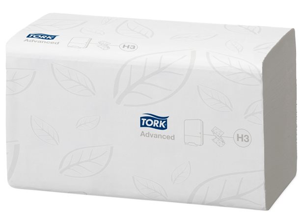 Kéztörlő, Z hajtás, toalettbe dobható, 2 rétegű, 250 lap, H3 rendszer, Advanced, TORK "Singlefold", fehér