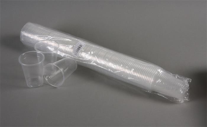 Egyszer használatos, eldobható műanyag pohár.