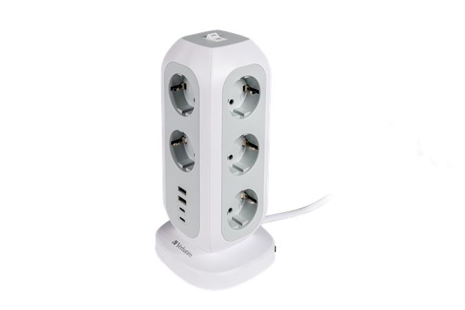 15-az-1-ben európai többcsatlakozós bővítő. A Verbatim EU Power Tower segítségével egy európai aljzatot 11 váltóáramú aljzatra, valamint két USB-C és két USB-A portra bővíthet.